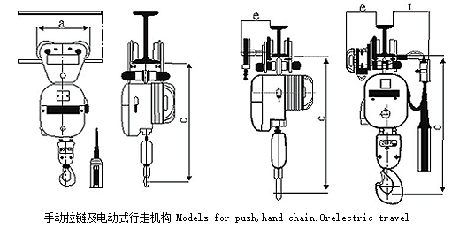 PK型葫蘆控制系統有直接控制和間接控制有兩種形式。間接控制為安全電壓,控制手柄防護等級為IP65/P54,錐轉子電機防護等級為IP65/P54。電動鏈式提升機配合各種行走機構,可在直線和平面范圍內完成物料的提升和運輸。行走軌道可以是普通工字鋼或標準軌道。